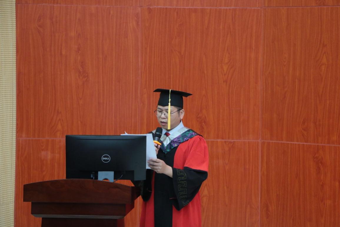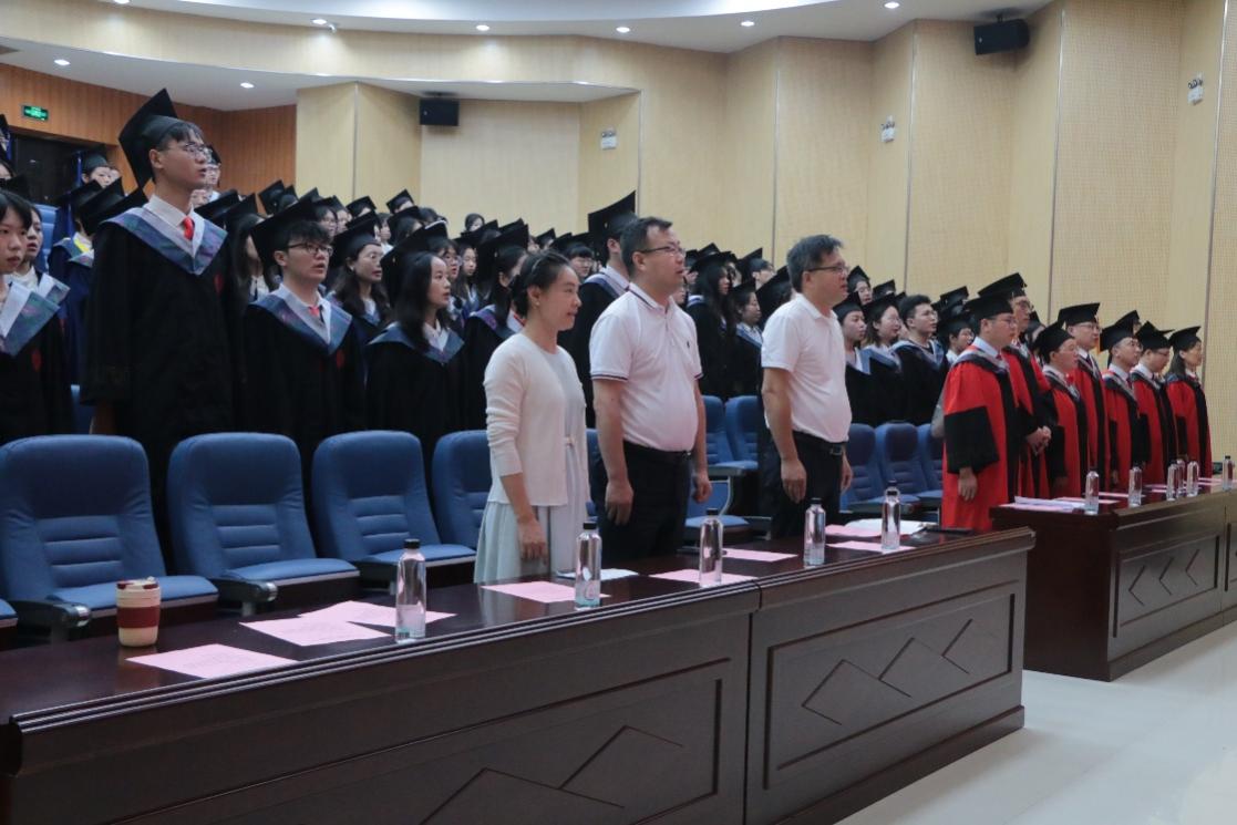 上午九时,毕业典礼在庄严的国歌声中拉开帷幕。学院党委副书记、副院长(主持行政全面工作)、学位评定分委员会主席李伟辉宣读学校关于授予学位的决定。