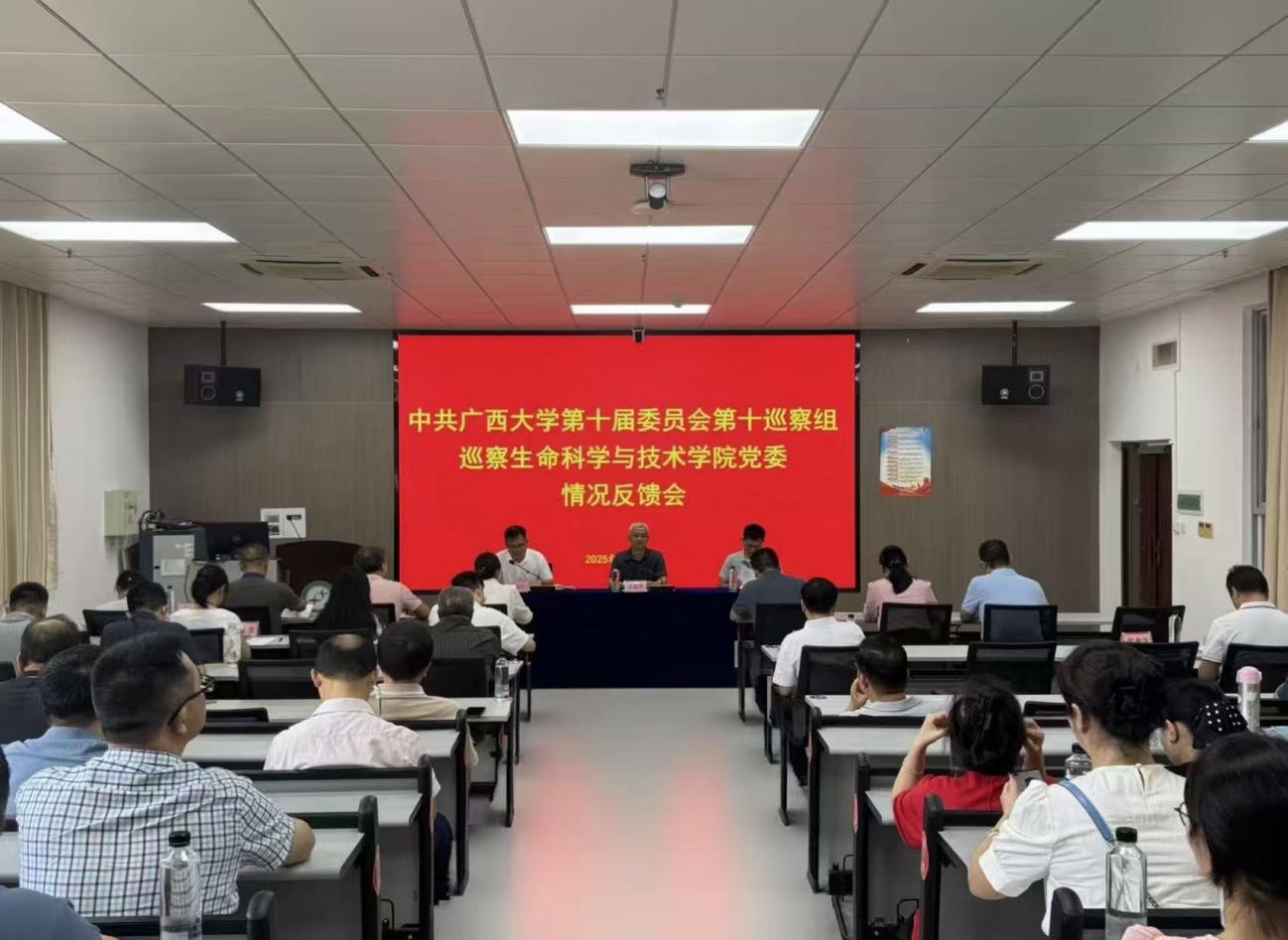 根据校党委统一部署,2025年9月16日下午,中共广西大学第十届委员会第十巡察组巡察beats365亚洲版党委情况反馈会在我院106室召开。校党委副书记汤志华出席巡察反馈会并就巡察整改提出要求。校党委第十巡察组副组长董攀代表巡察组反馈了巡察情况。beats365亚洲版党委书记刘培军主持反馈会议,并就做好巡察整改工作进行表态。