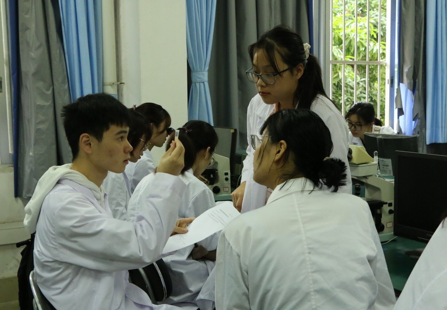 上午8:30,实验技能大赛在环境楼实验室展开,众多参赛者汇于一堂,展开操作技术上的比拼。本次实验操作比赛题目为“用血球记数板计数酵母菌悬液的酵母菌个数”,自行设计实验操作流程,自主操作更彰显本次大赛“活跃大脑,增强动手能力”的理念。选手们操作熟练,配合默契,展现团队的合作理念,在场导师密切关注选手们是否操作规范,并给予公平公正的评分,更促成了本次实验操作比赛的成功。10时整,实验操作比赛完成。