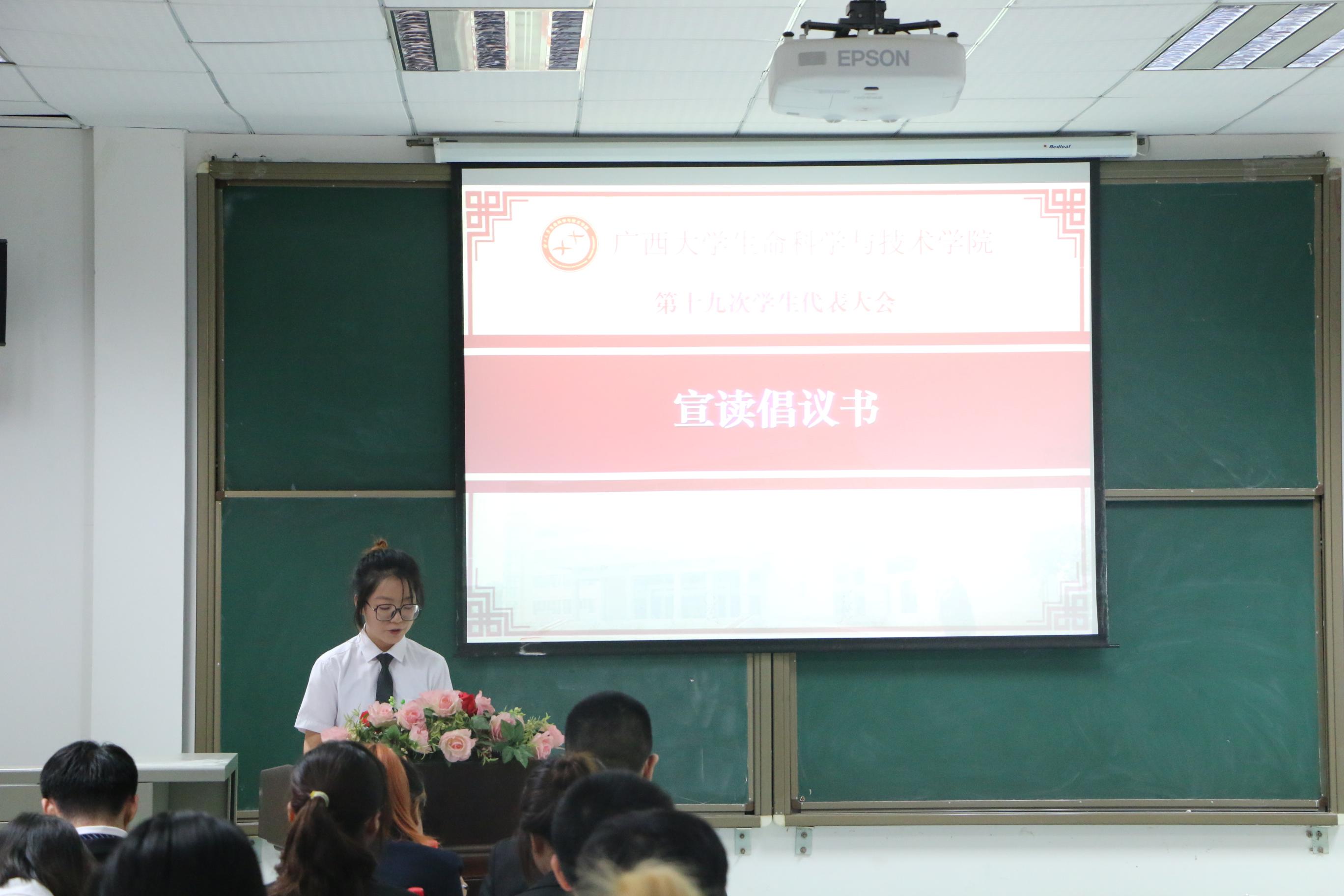 最后,由广西大学生命科学与技术第十九届主席团代表谢芩怡宣读倡议书。倡议全院学生加强学习、勇于开拓、创新实践、知行合一,争做新时代“五有”领军型人才。本次会议在《广西大学校歌》的歌声中结束。