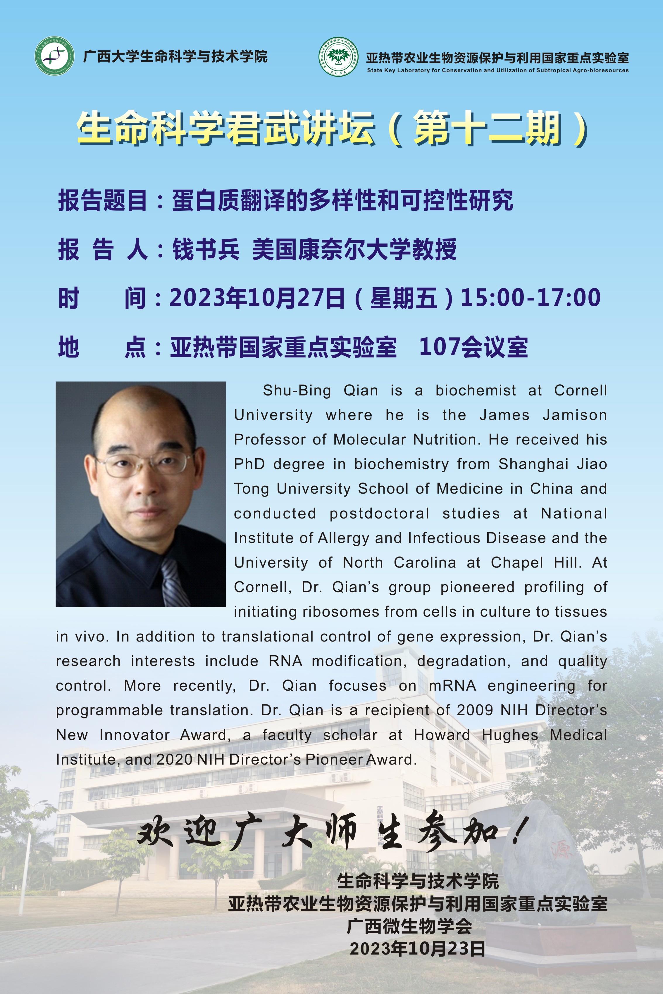 生命科学君武讲坛(第十二期)