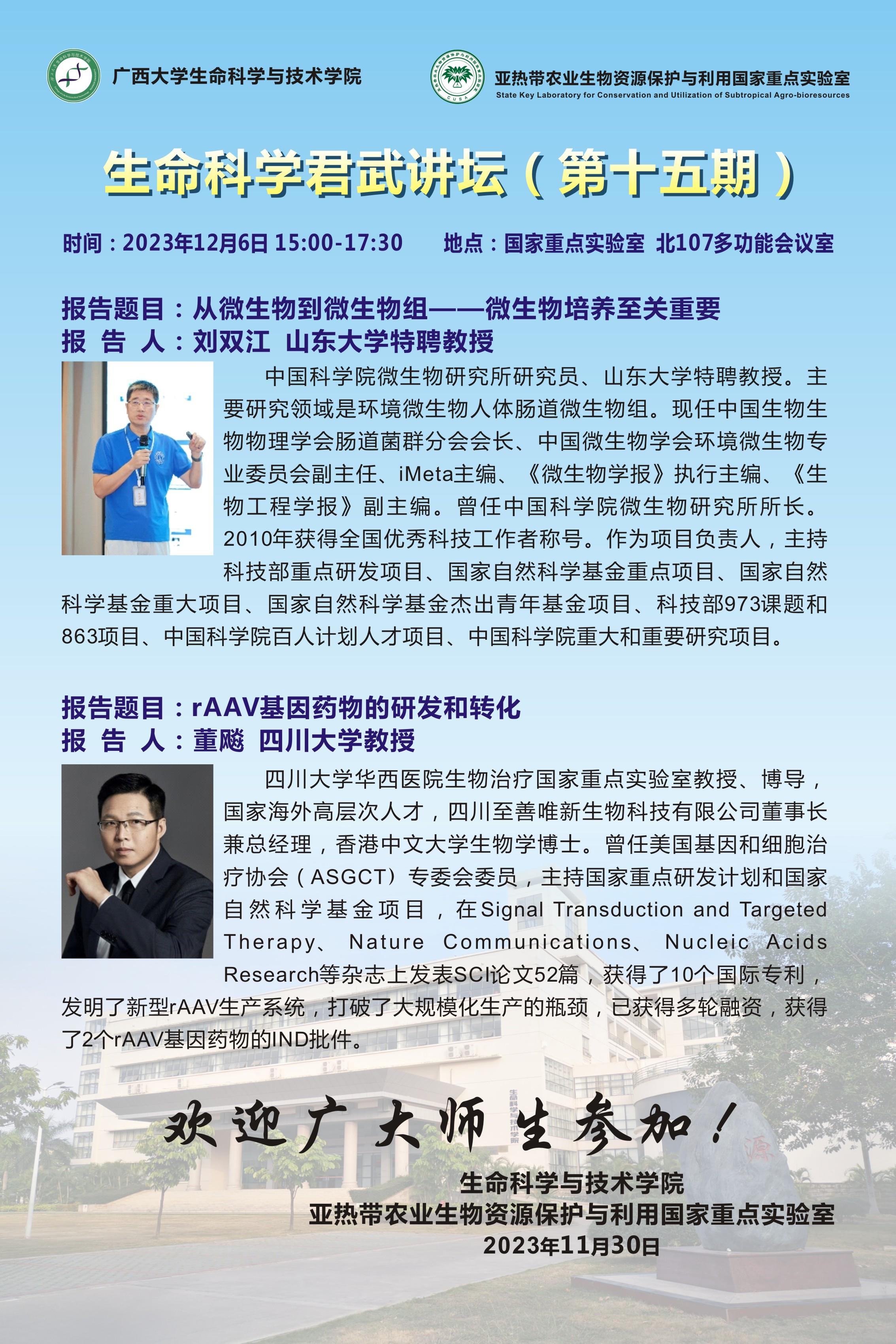 生命科学君武讲坛(第十五期)