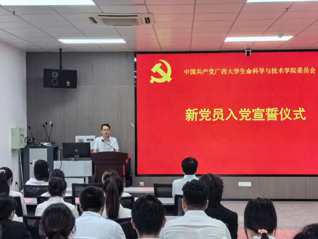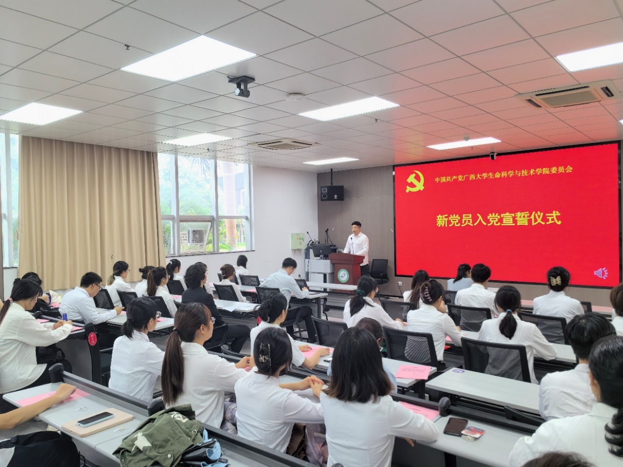 7月1日,学院党委在106教室举行新党员入党宣誓仪式。学院党委黄开勇书记、覃文月副书记参加了宣誓仪式,学院党委组织委员马奕主持宣誓仪式。