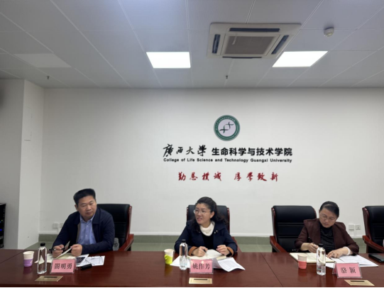 姚作芳部长一行认真听取汇报,对我院将统战工作与学科建设、人才培养深度融合的实践给予肯定。她结合学校统战工作的整体工作部署和统战工作的重点任务要求,从落实统战工作责任制、加强党外人士队伍建设、铸牢中华民族共同体意识、保障校园安全稳定、加强对党外人士关注关心等方面进行了详细指导。